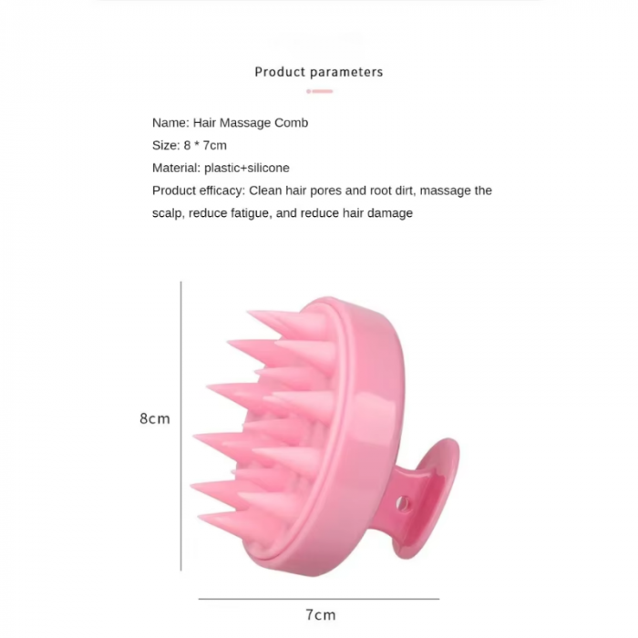 Un cepillo de masaje que ayuda a limpiar en profundidad el cuero cabelludo mientras se lava el cabello. Gracias a la textura ?nica del cepillo, los poros se limpian mejor y el cuero cabelludo recibe un maravilloso masaje. Gracias al efecto activo sobre la piel, mejora el flujo sangu?neo a los fol?culos pilosos y se acelera el crecimiento del cabello. Caracter?sticas del cepillo de masaje: ? no da?a el cuero cabelludo ? bueno para aplicar y hacer espuma con champ? para el cabello. ? limpia profundamente el cabello y el cuero cabelludo, elimina la caspa, la suciedad y el sebo, las part?culas muertas de la piel. ? tiene un buen efecto de masaje ? mejora la circulaci?n sangu?nea, alivia la fatiga ? mango ergon?mico, antideslizante y f?cil de sujetar