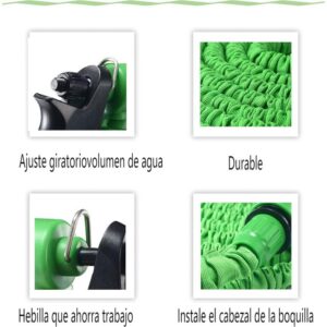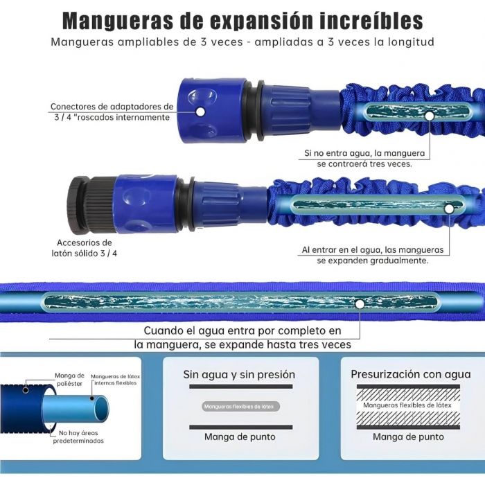 Manguera Expandible De L?tex De 30M Conector A Rosca De 1/2 Y 3/4, Pistola Con 7 Funciones De Salida:Niebla, Completo, Tipo Cono, Centrado, Plano, Ducha Y Jet. Se Extiende Hasta 30M Colores Verde Y Azul (Se entrega surtido a disponibilidad)