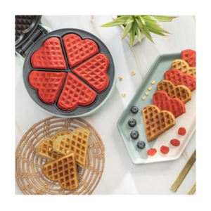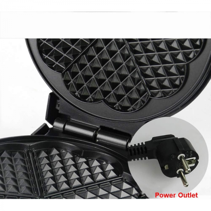 Maquina para hacer wafles en forma de corazon, waflera electrica. Potencia : 700 w Diametro : 18.5 cm Salen 5 porciones de mini wafles en forma de coraz?n. 1 Wafle Largo de donde surgen 5 mini wafles en forma de coraz?n. F?cil de limpiar