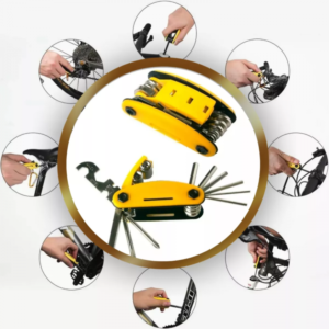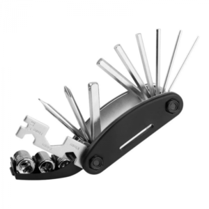 Multifuncional 16 en 1: ? La herramienta incluye 11 accesorios: Llave de vaso: 2 / 2.5 / 3 / 4 / 5 / 6 mm.Llave de vaso: 8 / 9 / 10 mm.Destornillador plano.Destornillador de precisi?n.Llave inglesa: 8/10/15 mm.Extensi?n para vaso Port?til y ligero: La herramienta es compacta y liviana, pesa solo 205g, por lo que cabe f?cilmente en tu bolsillo sin sentirse inc?moda. Ahorra valioso espacio para otros art?culos esenciales durante tu viaje en bicicleta, para que puedas resolver f?cilmente problemas menores de ciclismo sobre la marcha. Plegable y duradero: Esta herramienta combinada multifuncional tiene una cabeza de acero al carbono galvanizado con un dise?o plegable, lo que hace que la herramienta sea m?s duradera y resistente y facilita las reparaciones. F?cil de usar y seguro: Esta herramienta combinada multifuncional es f?cil de usar, con una interfaz simple e intuitiva que tanto principiantes como profesionales pueden dominar f?cilmente. No se necesitan procedimientos complicados; el proceso es simple y directo. Medida del producto: 9 Cm X 4.5 Cm X 3 Cm