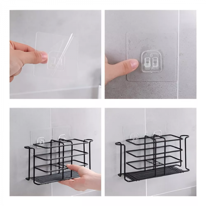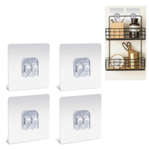 Ganchos Doble Autoadhesivo Super Resistente Gancho Perchero Ideal para colgar estantes de varillas, ordenas cables u otros objetos sin necesidad de hacer perforaciones innecesarias (como pueden ser en ceramicos de ba?os o cocinas). Los ganchos transparentes son r?pidos y f?ciles de colgar. Gracias a su revolucionaria tira adhesiva transparente, los ganchos se adhiere firmemente a una gran variedad de superficies, incluyendo metal, cer?micos, vidrio, azulejos y m?s. Son muy resistentes pero f?ciles de despegar. Removerlos es muy sencillo y adem?s no dejan agujeros, marcas o residuos pegajosos. Medidas: 6cm x 6cm Gancho: 0.6cm Aproximadamente Peso soportado:2Kg