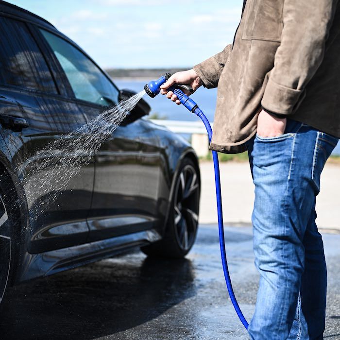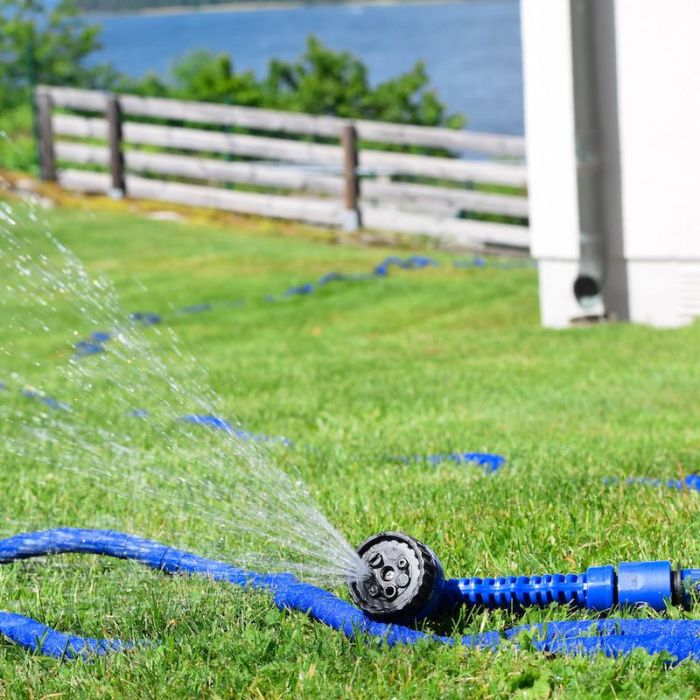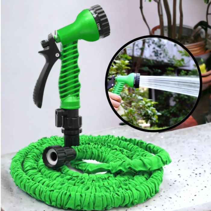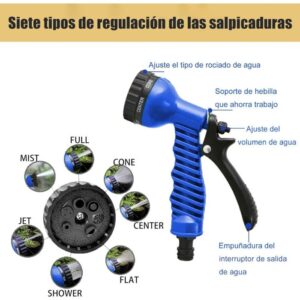 Manguera Expandible De L?tex De 30M Conector A Rosca De 1/2 Y 3/4, Pistola Con 7 Funciones De Salida:Niebla, Completo, Tipo Cono, Centrado, Plano, Ducha Y Jet. Se Extiende Hasta 30M Colores Verde Y Azul (Se entrega surtido a disponibilidad)