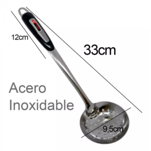 ? Material de acero inoxidable, duradero y f?cil de limpiar. ? El dise?o del producto satisface una variedad de necesidades. ? El proceso de pulido del espejo no oculta la suciedad y es f?cil de limpiar. ? Dise?o de mango, f?cil de agarrar sin da?ar tus manos ? El dise?o con agujeros en la cola es conveniente para colgar y almacenar Medidas: Largo: 33cm Ancho: 9.5cm