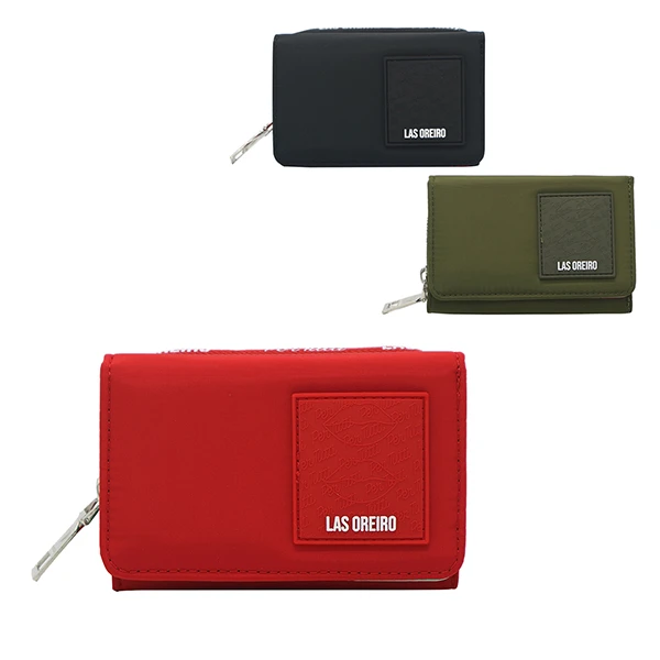 Billetera Las Oreiro PT 21463. Colores: Negro, rojo y verde. Material: 100% Nylon. Medidas: 12 cm de alto x 8,5 cm de ancho x 4 cm de profundidad.