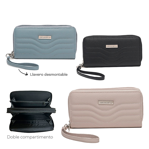 Billetera Trendy 17107 Color: Negro, hueso y jean. Medidas: 10cm de alto x 19cm de ancho x 5cm de profundidad. Material: 100% PU