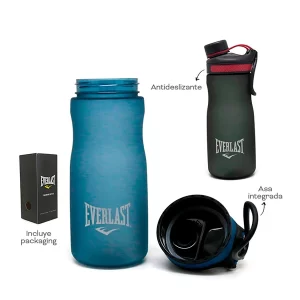 Botella Everlast 10932C Color: Negro y Azul. Medidas: 21,5cm de alto x 7,5cm de diametro. Material: 100% Policarbonato. Antideslizante, asa integrada, incluye packaging 850ml