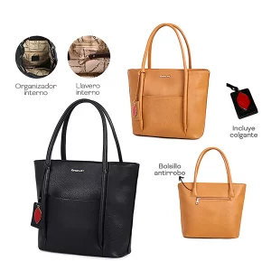 Cartera Oreiro Love 22232 Color: Negro y suela. Medida: 27,5cm de alto x 29cm de ancho x 13,5cm de profundidad. Material: 100% PU