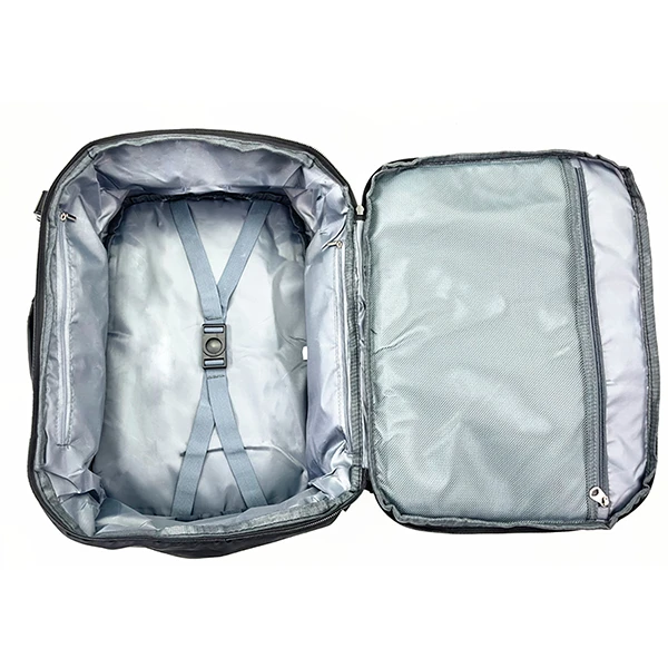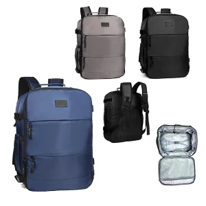 Mochila de Viaje Travel Tech 52585 Color: Negro, azul y gris. Medidas: 44cm de alto x 30cm de ancho x 17cm de profundidad. Material; 100% Poliester.