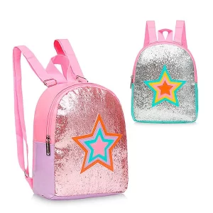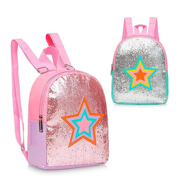 Mochila Infantil Trendy 17413 Color; Rosa y plateado. Medidas: 22cm de alto x 19,5cm de ancho x 7cm de profundidad. Material: 60% PU + 40% PVC.