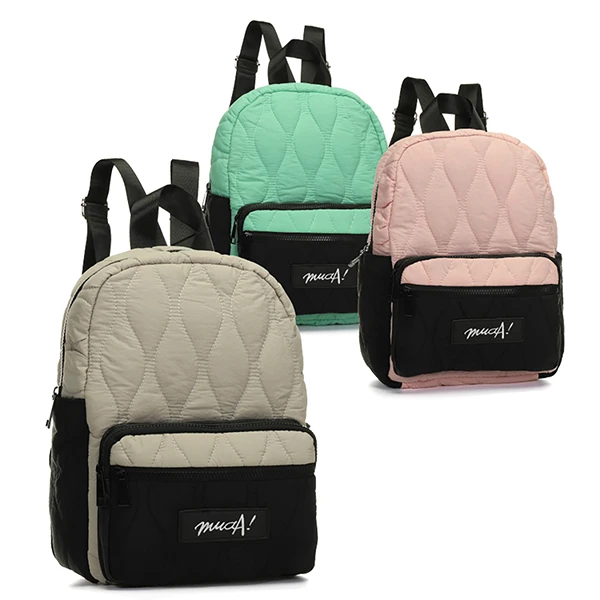 Mochila Muaa 52554 Color: Gris con Negro, rosa con negro y aqua con negro. Medidas: 34cm de alto x 26,5cm de ancho x 11cm de profundidad. Material: 100% Polister