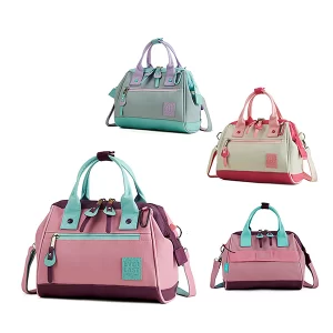 Morral Boca de Pez Everlast 22329 Color: Rosa, Hueso y Gris. Medidas: 25cm de alto x 28cm de ancho x 15cm de profundidad. Material: 100% Nylon.