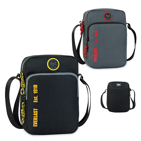Morral Everlast 27289 Color: Grey y Black. Medidas: 22,5cm de alto x 16cm de ancho x 7cm de profundidad. Material: 100% Poliester.