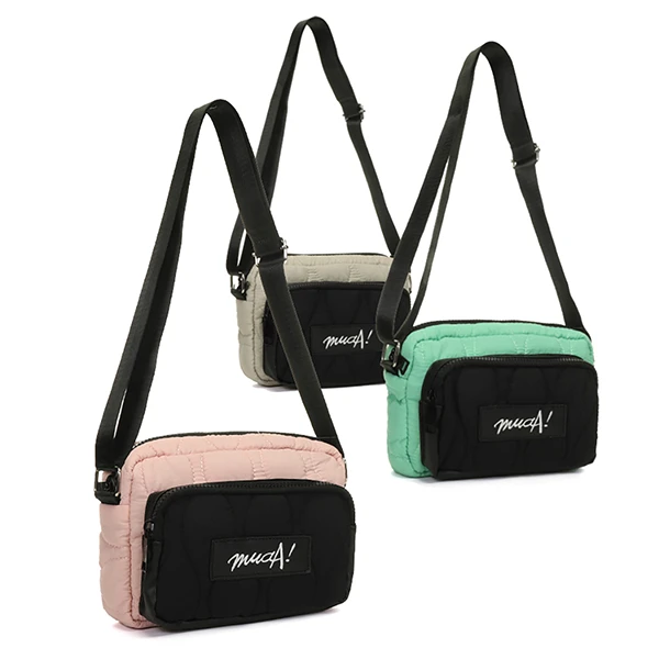 Morral Muaa 52553 Color: Gris con Negro, rosa con negro y aqua con negro. Medidas: 23cm de alto x 15cm de ancho x 5cm de profundidad. Material: 100% Polister.