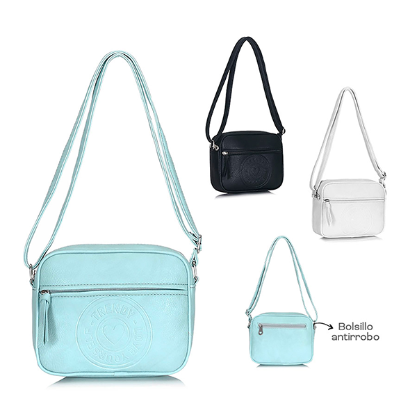 Morral Trendy 17498 Color: Negro, beige y celeste. Medidas: 17cm de alto x 21cm de ancho x 5cm de profundidad. Material: 100% PU