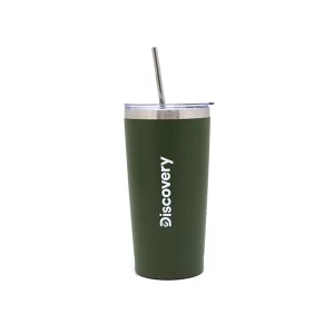 Vaso Térmico Discovery 14012E Color: Negro, Verde y Blanco. Medidas:17,5cm de alto x 8,5cm de diametro. Material: 600 ml. acero. Interior de acero 304 doble capa, tapa con interna de silicona y sorbete metálico, incluye packaging