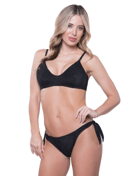 Los textiles diferenciales son la última tendencia en trajes de baño y esta línea no se queda atrás. Se presentan dos conjuntos destacados por estar confeccionados en un textil con un sutil brillo de lurex en su composición, que lo hace una opción llamativa y sexy con sus detalles de argollas metálicas. Pudiendo encontrar triangulo y tanga colaless o corpiño con tanga con nudo, ambos conjuntos tienen prendas regulables haciéndolos adaptables a todos los talles y cuerpos. Podes encontrar opciones en color fresa, negro y nut. COMPOSICIÓN: 66% POLIESTER – 30% LUREX – 4% ELASTANO