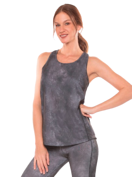 Musculosa deportiva Stone Wash. Es ideal para entrenar ya que está4 confeccionada de microfibra liviana, generando una prenda holgada que se adapta a diferentes cuerpos. Las terminaciones del cuello, sisa y espalda son con collareta que ayudan a un mejor calce. El estampado acompaña la tendencia, simula un desgaste en la prenda en tonos de grises.