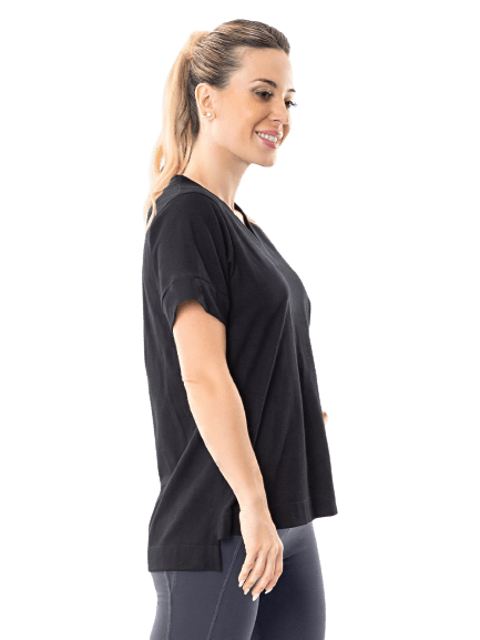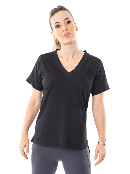 Remera manga corta Sydney.Confeccionada en jersey de algodón, con escote en V superpuesto en el centro. Corte amplio, más larga en trasero que delantero. Pequeño tajo en lateral para lucir diferencia de largos. Composición de articulo: 100% Algodón.