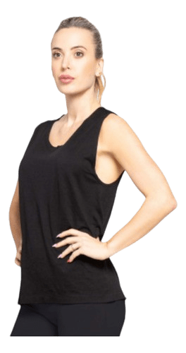 Remera sin mangas sin costura. Tejida en microfibra sin lycra, es liviana y fresca ya que no se ajusta al cuerpo. Detalle de calados en espalda. Escote y sisas amplias para mayor comodidad. Composición de articulo: 100% Poliamida.