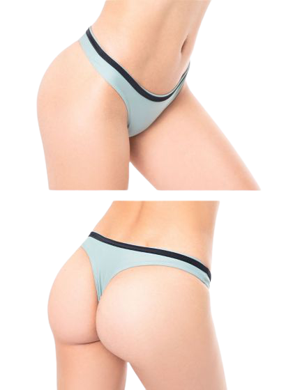 Excelente tanga colaless con detalles de rayas en color mint. Viene en talles del 1 al 4.