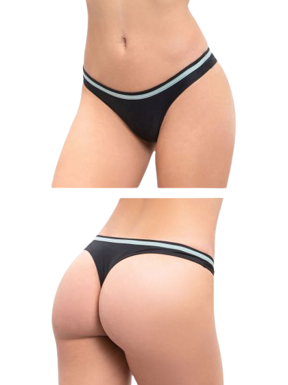 Excelente tanga colaless con detalles de rayas en color negro. Viene en talles del 1 al 4.